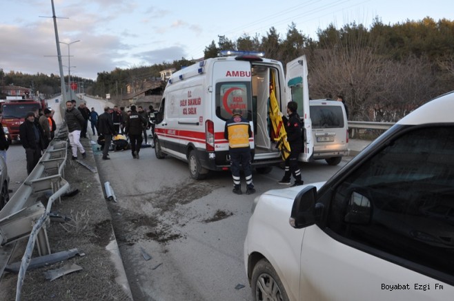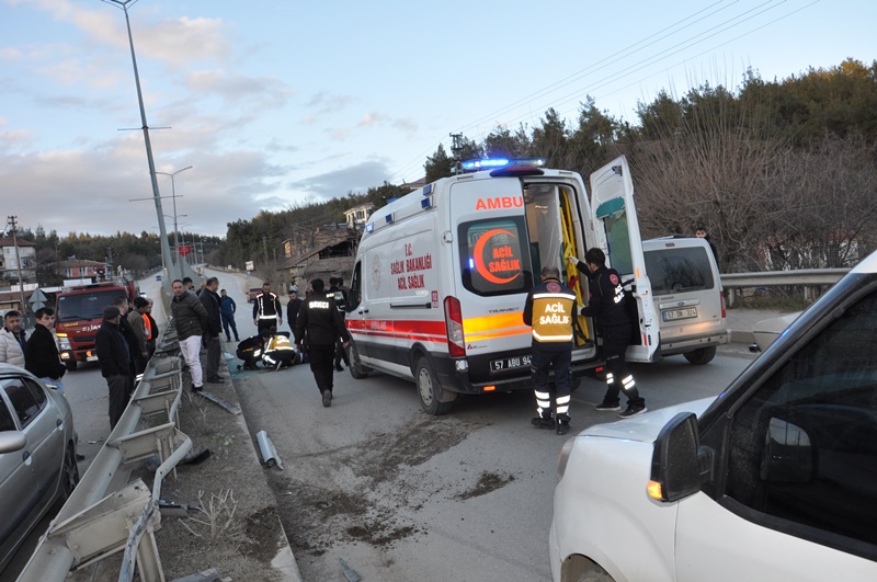 28 Ocak 2026 Çarşamba günü saat 17.30 sıralarında Boyabat istikametinden Küçük Sanayi Sitesi yönüne seyir halinde olan otomobil, Pazar Yokuşu mevkiinde sürücüsünün henüz belirlenemeyen bir nedenle direksiyon hâkimiyetini kaybetmesi sonucu bariyerlere çarptı. Çarpmanın etkisiyle araç takla atarak ters döndü.