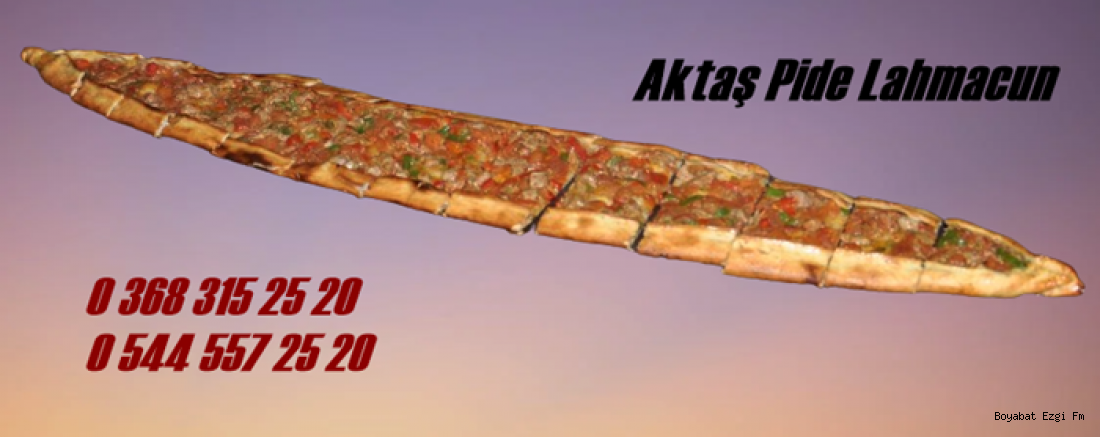 Kaliteli malzeme, usta eller ve güler yüzlü hizmet anlayışını bir araya getiren Boyabat Aktaş Pide ve Lahmacun Salonu, lezzetiyle olduğu kadar müşteri memnuniyetiyle de fark yaratıyor. Boyabat’ta pide ve lahmacun keyfini en üst seviyede yaşamak isteyen herkesi bu seçkin mekâna davet ediyor.