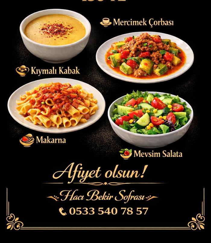 İster ailenizle ister iş yerinizde, Boyabat Hacı Bekir Sofrası’nın lezzetlerini sofralarınıza kolayca taşıyabilirsiniz. Hızlı servis, güler yüzlü hizmet ve doyurucu porsiyonlarla sizleri bekliyoruz.