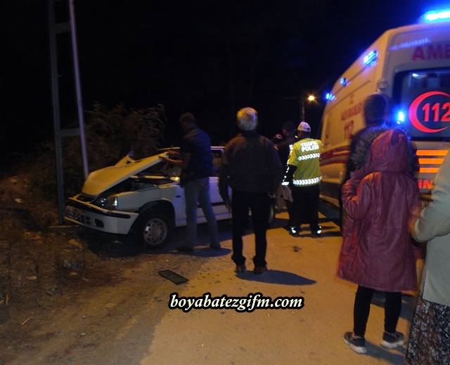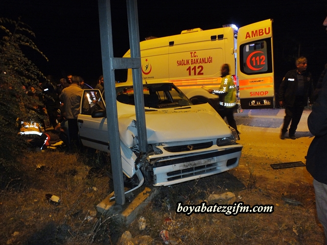 Edinilen bilgiye göre, Boyabat istikametine seyir halinde bulunan otomobil aniden sürücü kontrolünü kaybetmesi üzerine yolun sağında bulunan elektrik direğine çarptı. Çarpmanın şiddeti ile otomobil içinde bulunan Alper K. (38), Sudemir K. (11), Rahime K. (77) yaralandılar. Yaralılar 112 sağlık ekipleri tarafından Boyabat 75. yıl devlet hastanesine acil servisine kaldırıldılar Yaralılardan 2 kişi ayakta tedavi gördü.