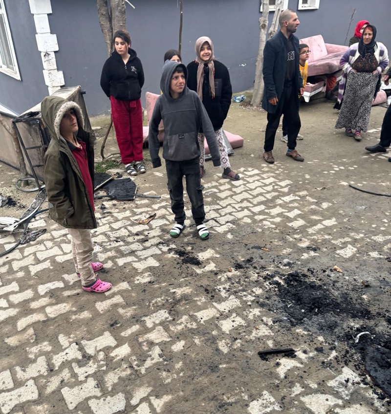 Yangını fark eden ev sakinleri, kısa sürede büyüyen alevlere kendi imkanlarıyla müdahale etti. Alevlerin arasındaki eşyaları dışarı çıkarmaya çalışan aile bireyleri, yangının daha da büyümemesi için yoğun çaba sarf etti.