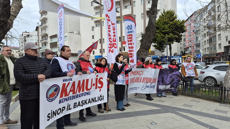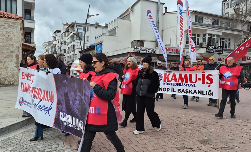 SİNOP – 8 Mart Dünya Kadınlar Günü vesilesiyle Sinop’ta anlamlı bir etkinliğe imza atıldı. Birleşik Kamu-İş Konfederasyonu Sinop İl Başkanlığı, kadınların toplumdaki yeri, emeği ve hakları için dev bir yürüyüş ve basın açıklaması gerçekleştirdi.