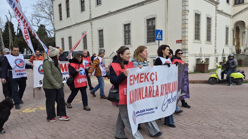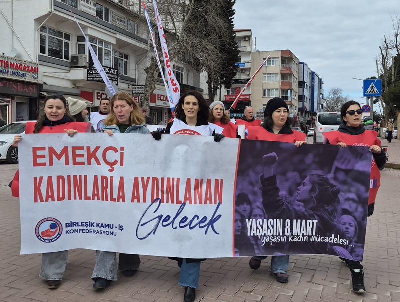 Bugün saat 13.00’te sendika binası önünde toplanan Birleşik Kamu-İş üyeleri ve çok sayıda vatandaş, ellerinde dövizlerle Uğur Mumcu Meydanı'na doğru yürüyüşe geçti. "Emekçi kadınlarla aydınlanan gelecek" sloganlarının yükseldiği yürüyüşe, çevre esnafı ve vatandaşlar da alkışlarla destek verdi.
