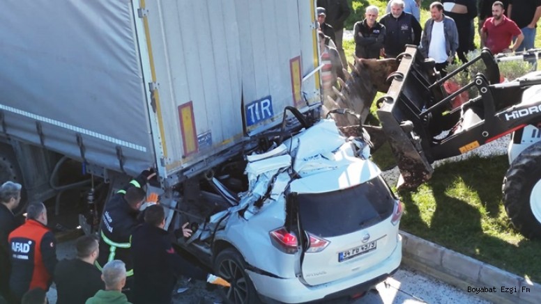 Sinop’ta 17 Kasım 2025 günü saat 13.00 sıralarında meydana gelen trafik kazasında bir kişi yaşamını yitirdi. Edinilen bilgilere göre 34 PG 4579 plakalı otomobil, seyir halindeki tıra arkadan çarptı.