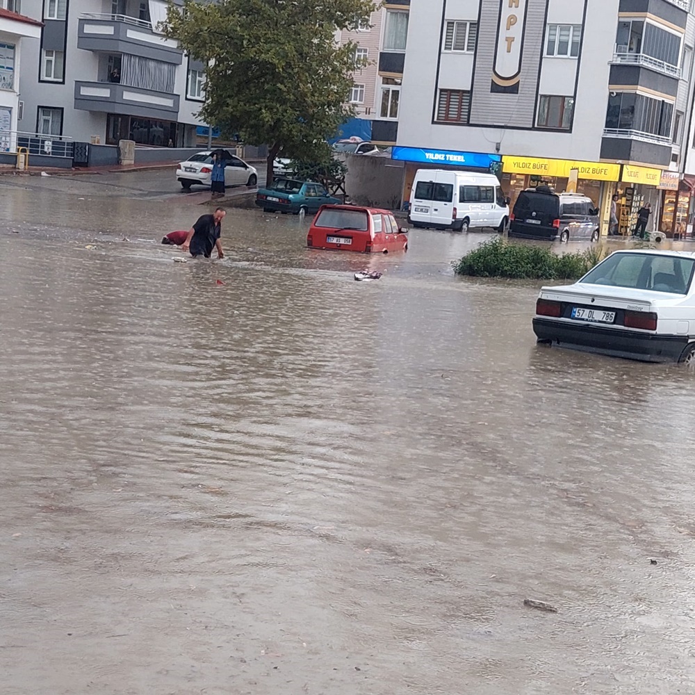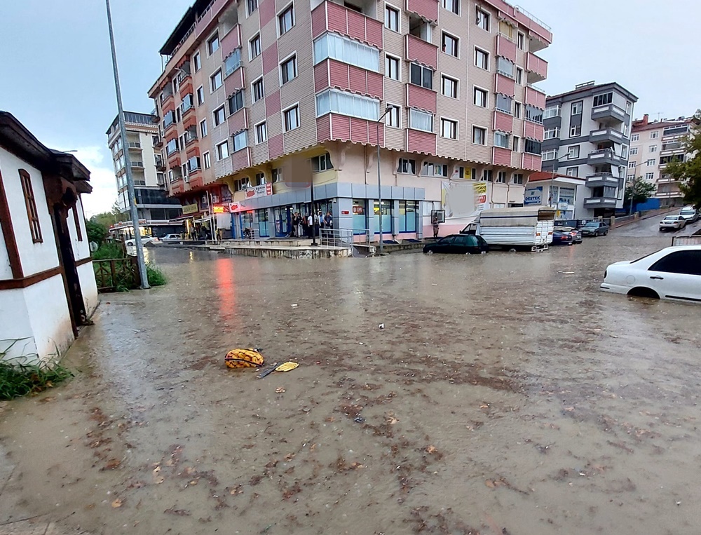 Akşam saatlerinde başlayan sağanak yağış sonrası selden oluşan birikintiler üzerine Boyabat Yıldız mahallesinde bazı vatandaşları tedirgin etti